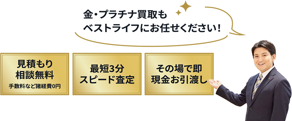 まさに⾦を売るなら今がチャンスです。⾦買取、ご相談は「ベストライフ」にお任せください