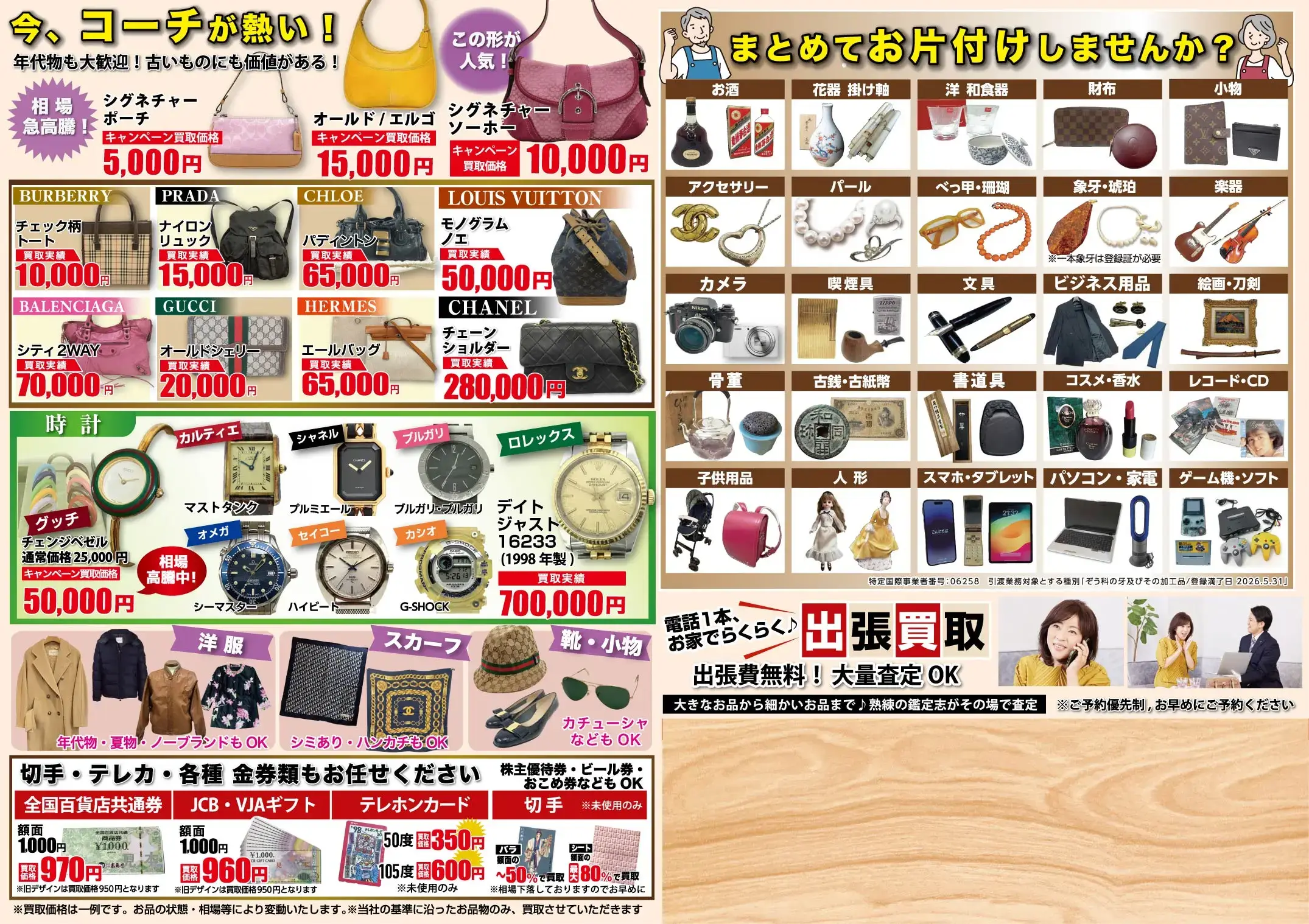 ブランド品・金プラチナ・宝石・時計・衣類から